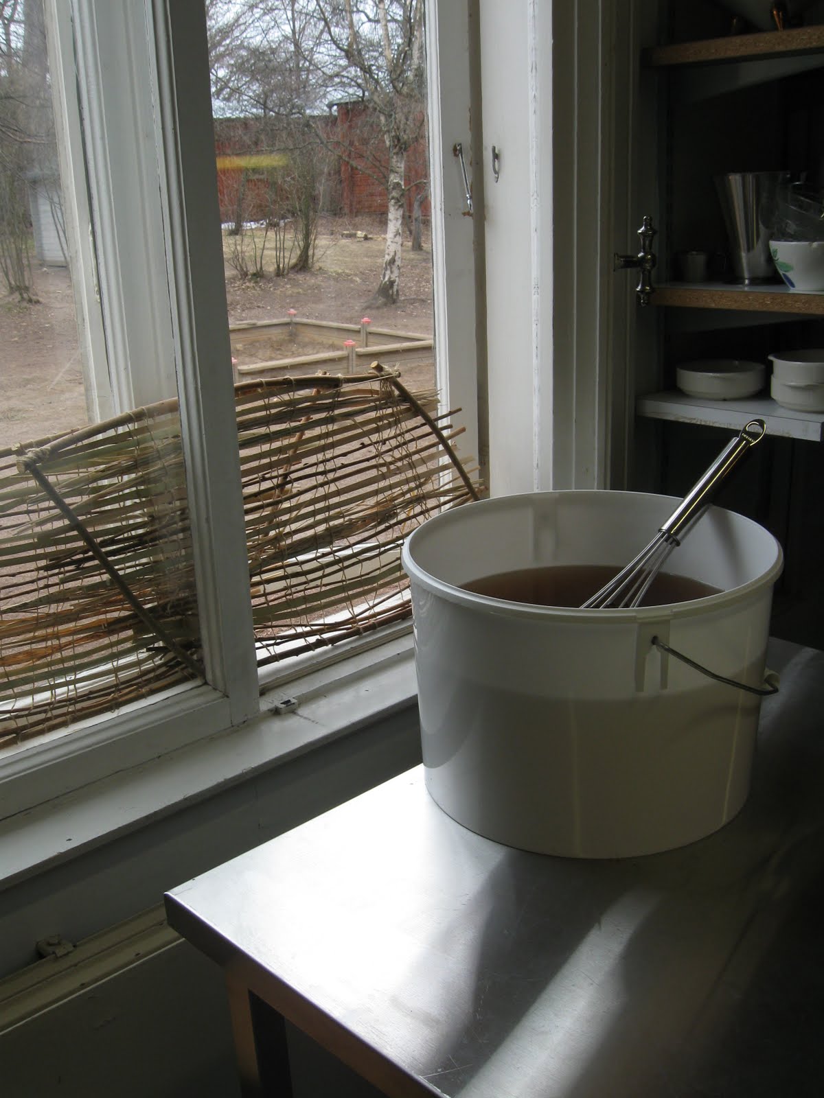 Blanda sockret i ett stort ämbar eller kastrull. Koka upp vattnet. Häll vattnet över sockret. Pressa citronerna och tillsätt den silade citronsaften i blandningen. Låt svalna. När vätskan är ljummen (kring 37 grader) tilsätt jästen.(Man kan först blanda ut jästen i en mindre mängd vätska som sedan hälls över i resten). Om man vill kan man i detta skede ännu tillsätta en flaska öl. Låt stå i rumstemperatur ett dygn. Tappa sedan mjöden på flaskor i vilka man lagt några russin och någon tsk socker på botten. Lämna lite luftrum, fyll inte flaskorna ända upp. Skruva på korkarna och ställ sedan mjöden svalt. Det tar ca. en vecka innan den är färdig. Vill man påskynda processen låter man flaskorna stå längre i rumsvärme innan man ställer dem svalt. Då tar det 3-4 dagar.